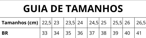 Escolha sua numeração habitual. Em caso de dúvidas, entre em contato com nosso atendimento.